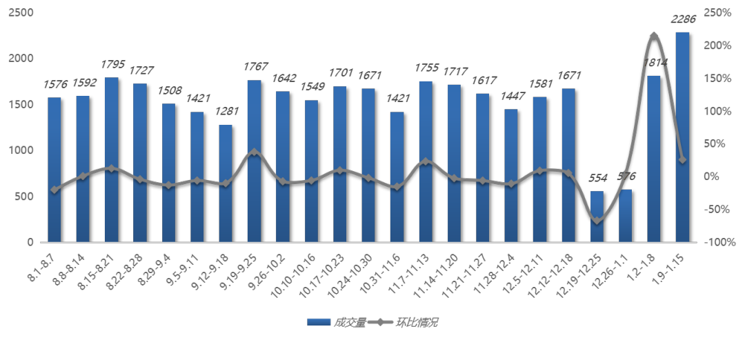 1、成交量2286套,購(gòu)房(fáng)者預期扭轉