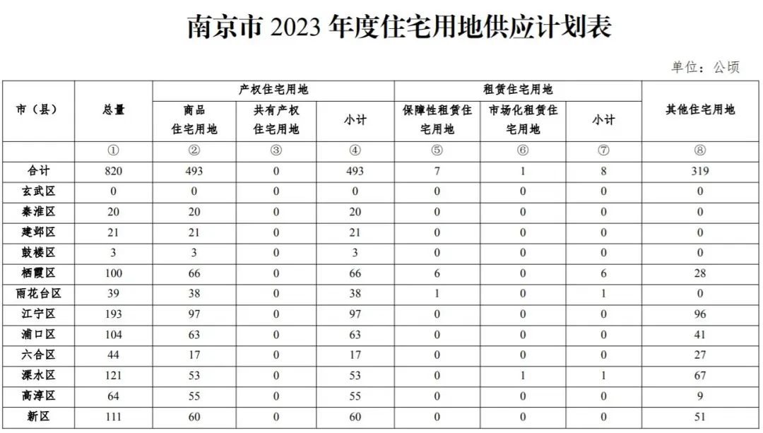根據官方發布的(de)消息:2023年(nián)度南(nán)京市δ®(shì)住宅用(yòng)地(dì)計(jì)劃供應820公頃,其中:€•産權住宅用(yòng)地(dì) 493 公頃(商品住宅用(yòng)地(dì)493公頃,共有(yǒu)産權住宅用(yòng)地(dì)0公頃 ¥ ),租賃住宅用(yòng)地(dì)8公頃(保障性租賃住宅用(yòng)地(α£σdì)7公頃,市(shì)場(chǎng)化(huà≈<δ)租賃住宅用(yòng)地(dì)1公頃),其他(tā)住宅用(yòng)地(dì)319公頃≠≈。