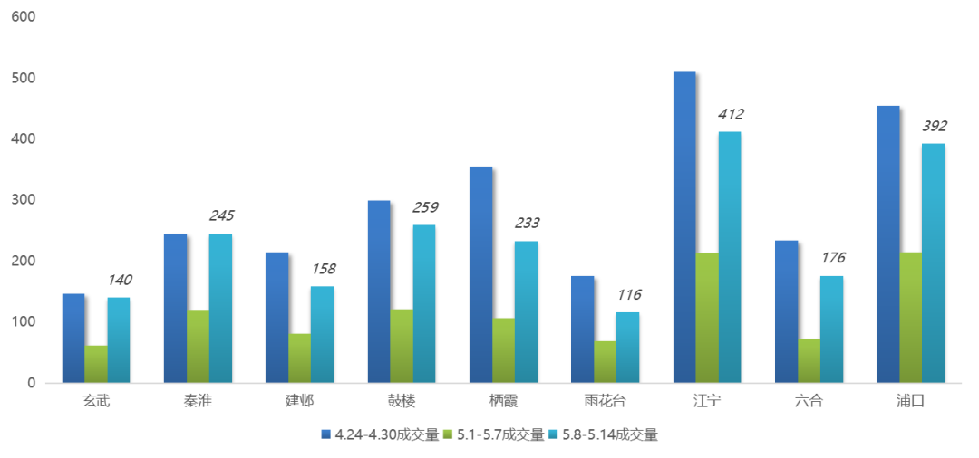 4.24-5.14南(nán)京各區(qū)二手住宅周成交量情✘↕ 況