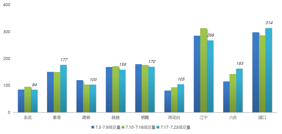 7.3-7.23南(nán)京各區(qū)二手住宅周成交量情況
