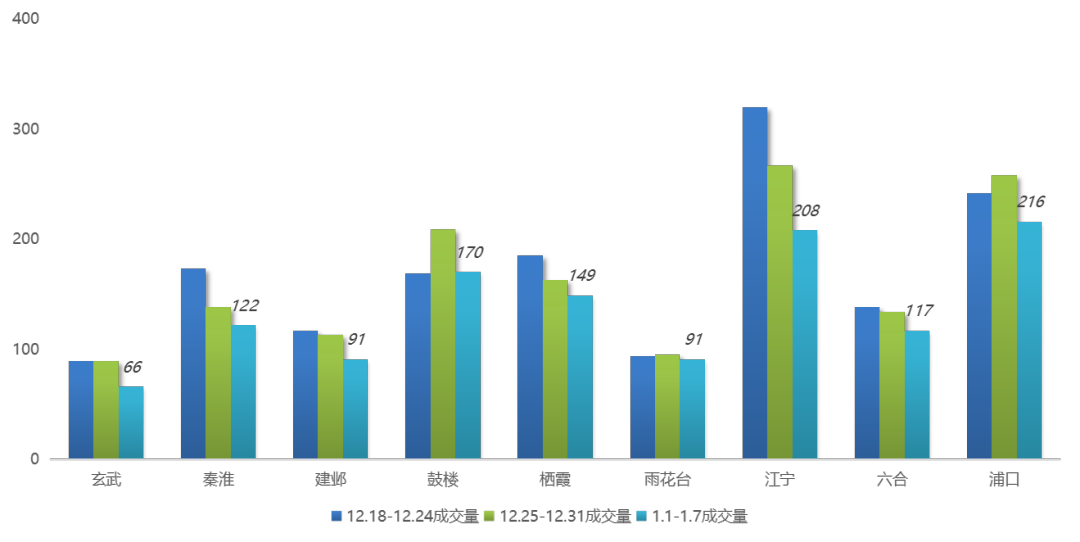 12.18-1.7南(nán)京各區(qū)二手住宅周成交量情況