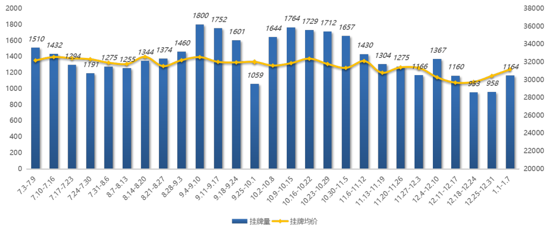 2023年(nián)南(nán)京二手住宅逐周新增挂牌量價情況