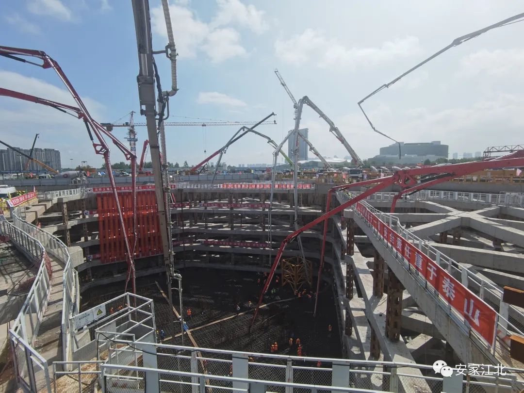 2021年(nián)8月(y∑♦±uè)21日(rì),地(dì)下(xià)空(kōng)間(jiān ↕©)一(yī)期三區(qū)1段暨陸地(dì)500米超塔大(dà)底闆混凝土(tǔ)澆築開(k§φāi)泵儀式正式舉行(xíng)。