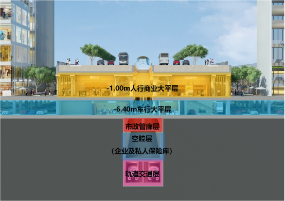 項目遵從(cóng)“小(xiǎo)街(jiē)區(✔©qū)、密路(lù)網”開(kāi)發格局,由上(shàng)而£×≈β下(xià)分(fēn)為(wèi)商業(yè)大(dà÷πε)平層、停車(chē)交通(tōng)大(dà)平層、市(shì)政Ω∞"₽綜合管廊層、管廊夾層、空(kōng)腔層和(hé)兩₩$₹♥層的(de)地(dì)鐵(tiě)通(tōng)行(x'✘β>íng)層,總計(jì)7層。