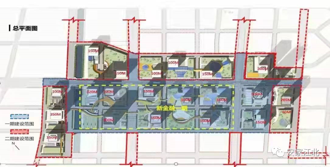 新金(jīn)融中心二期包括1棟350米、1棟250米的(de)超高(gāo)建築,除此之外(wài)還(hái)$×↕有(yǒu)1棟200米,2棟150米,1棟100米的(de)γ✘↕高(gāo)層建築。