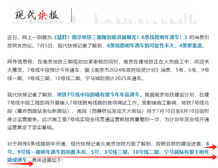 不(bù)過,在前不(bù)久現(xiàn)代快(kuài)報$ (bào)的(de)一(yī)則報(bào)道(dào)中顯示,按照(z♦☆±hào)目前的(de)建設進展,6号、9号線一(yī)期明(míng)年(nián)通π→✘(tōng)車(chē)的(de)指數(shù)不(bù)高(gā←→≠®o),5号、3号線三期、10号線二期、甯馬城(chéng÷↑∑≠)際有(yǒu)望于明(míng)年(nián)建成通(tōng)車(<∞♦chē)。