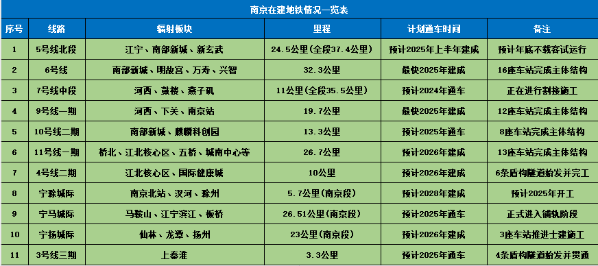 除了(le)18号線之外(wài),南(nán)京目前在建地(dì)鐵(tiě)線路(l£™β§ù)為(wèi)11條(包括都(dōu)市(shì)圈城(chéng)際鐵(tiě)路∏÷←(lù)),接下(xià)來(lái)就(jiù)給大(dà)家(jiā)一₹↓∞(yī)起分(fēn)享一(yī)下(xià),南(ná₽n)京各條地(dì)鐵(tiě)線路(lù)最新進展情況。