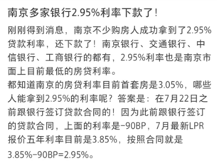 南(nán)京房(fáng)貸利率已降至3.05%,降存量呼聲不(bù↑₽>)止!