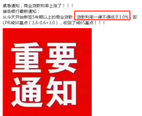 11月(yuè)5日(rì),關于貸款利率不(bù)得(de)低(dī)于3.0%的(de)消息刷爆朋(péng)友(yǒu)圈,即LPR-60bp(3.6%-0.6%=3.0%),收回此前'♣✘λ的(de)-65bp的(de)優惠!