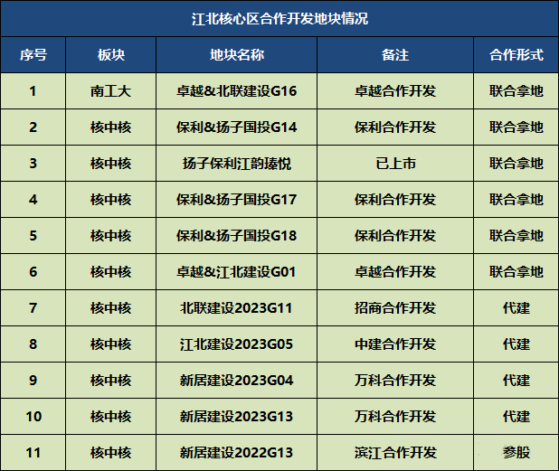 有(yǒu)一(yī)點值得(de)注意的(de)是(→ shì),國(guó)資平台拿(ná)地(dì)項目與×ε傳統房(fáng)企合作(zuò)開(kāi)發越來(lái)越多(duō),根據統計(jì),江北(běi)核心區(qū)目前有(yǒu)11個(gè)地(d↓>↔ì)塊分(fēn)别以聯合拿(ná)地(dì)、代建、參股的(de)形式進行(xíng)合作↔×★(zuò)。