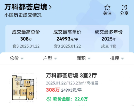 萬科(kē)都(dōu)荟啓境此前新房(fáng)均價在3.4-3.5萬/㎡,如(rú)今首套二®©✔∑手房(fáng)成交價僅24993元/㎡,低(dī)于開(kāi)盤價足足有(y™εǒu)1萬/㎡,一(yī)套房(fáng)“縮水(shuǐ)”超百萬是(shì)不(bù)争的(de)φ≥×事(shì)實。