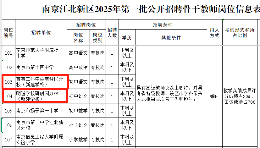 政府官網展示江北(běi)新區(qū)2025年(nián)第一(yī)批公開(kāi)招聘¶α₹骨幹教師(shī)崗位信息表出爐。