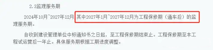 就(jiù)在去(qù)年(nián),11号線一(yī)期工(gōng)程安裝裝修監理(lǐ•♥∞≤)中,首次提到(dào)2027年(nián)1月(yuè)-2027年(nián)12月(y↑ $÷uè)為(wèi)通(tōng)車(chē)後的(de)工(gōng)程保 ₹λ↔修期,11号線通(tōng)車(chē)時(shí)間(jiān)也(yě)♠←γ再次延後。