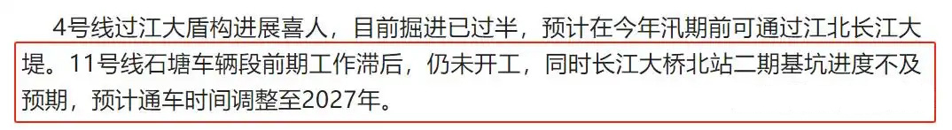 很(hěn)多(duō)江北(běi)人(rén)都(dōu)在等11号線,最開(kā €§i)始11号線計(jì)劃于2025年(nián)通(t≈₽ōng)車(chē),但(dàn)按照(zhào)現(©★→™xiàn)有(yǒu)的(de)進度顯然無法實現(xiàn),随後在官方計(j₽εì)劃中,11号線的(de)通(tōng)車(chē)時(shí)間(jiān)要↓€♠(yào)放(fàng)到(dào)了(le)2026年(nián)。