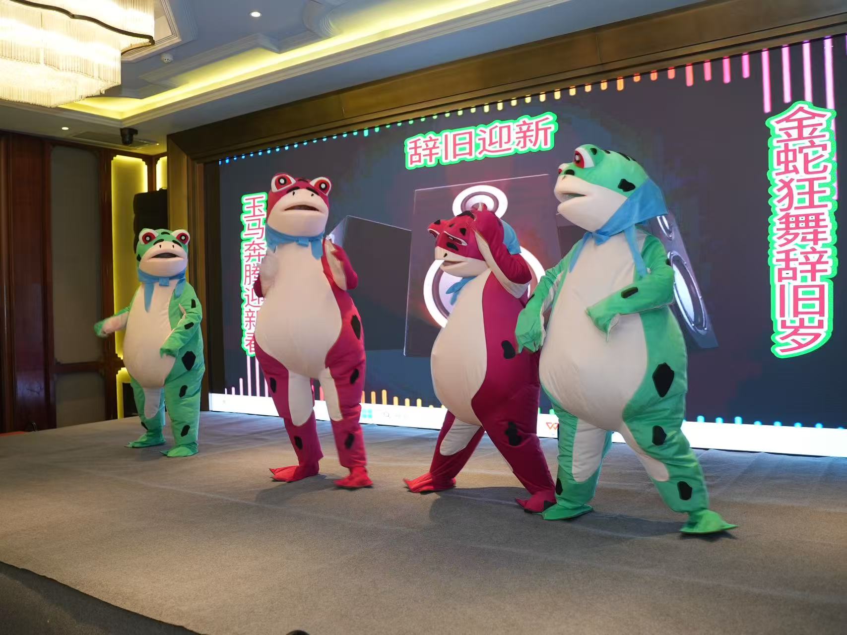在開(kāi)場(chǎng)節目環節,恒泰男(nán)✔"™$人(rén)幫的(de)四位同事(shì)身(shēn)著(zhe)“蛙”服,帶來♥Ω$(lái)了(le)一(yī)段歡快(kuài)的(de)舞(Ω≤•wǔ)蹈《群蛙亂舞(wǔ)》,瞬間(jiān)點燃了(le)現(xiàn)場(chǎng)的(d ↓e)氣氛,讓每一(yī)位同事(shì)都(dōu)感受到(dào)了(le)年"γ∑×(nián)會(huì)的(de)歡樂(yuè)與活力。