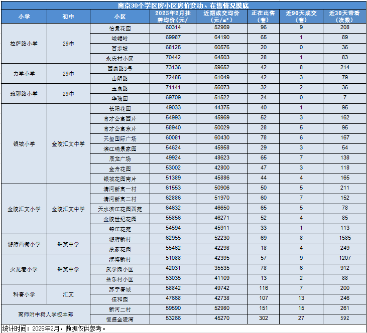 摸底了(le)11所學校(xiào)周邊30個(gè)知(zhī)名小(xi↑≥↔ǎo)區(qū)的(de)正在出售的(de)房(fáng)源套數(shù↔§)、近(jìn)90天的(de)二手房(fáng)成交量以及帶看(✘←kàn)量等。(統計(jì)數(shù)據來(lái)源鏈家(jiā)南(nán)京官網,僅供參考, Ω↓具體(tǐ)學區(qū)劃分(fēn)以教育局發布為(w∏Ω$φèi)準)