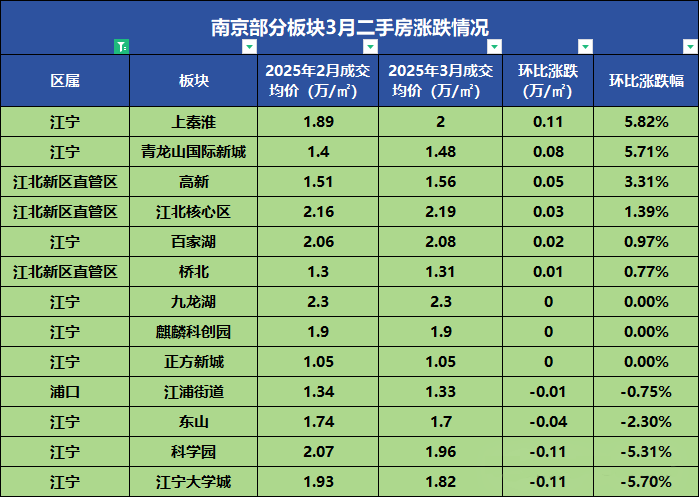 從(cóng)這(zhè)份均值數(shù)據來(lái)看(kàn),南(nán)京主流闆塊二手∏σ↑房(fáng)價格環比有(yǒu)所攀升,也(yě)就(jiù)是(shì)說(shπ→uō),目前這(zhè)些(xiē)片區(qū)二手房(fáng)是(shì)處于一(yΩλ→ī)個(gè)止跌回升的(de)階段。