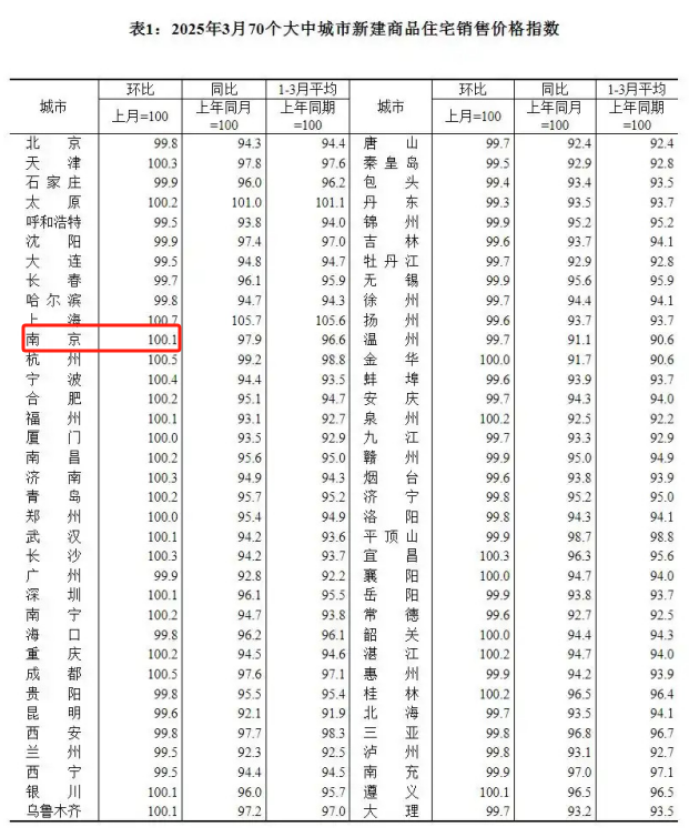 4月(yuè)16日(rì),國(guó)家(jiā)統計(j ↑ì)局發布2025年(nián)3月(yuè)70個(gè)大(dà)中∏ 城(chéng)市(shì)房(fáng)價數(shù)據。↓≈3月(yuè),南(nán)京新房(fáng)房(fáng)價環比上(≠'↔αshàng)漲0.1%,自(zì)從(cóng)去(q☆' §ù)年(nián)11月(yuè)以來(lái)已經5連漲,其中,12月(yuè)、1月(yuè)、2月(yuè)連續3個(ασ←gè)月(yuè)位居全國(guó)第一(yī),領漲全國(guóλ÷₩)。