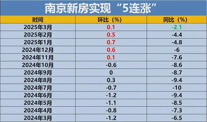 2025年(nián)3月(yuè),南(nán)京新房(fáng)價格環比上(shàng)漲0.1%