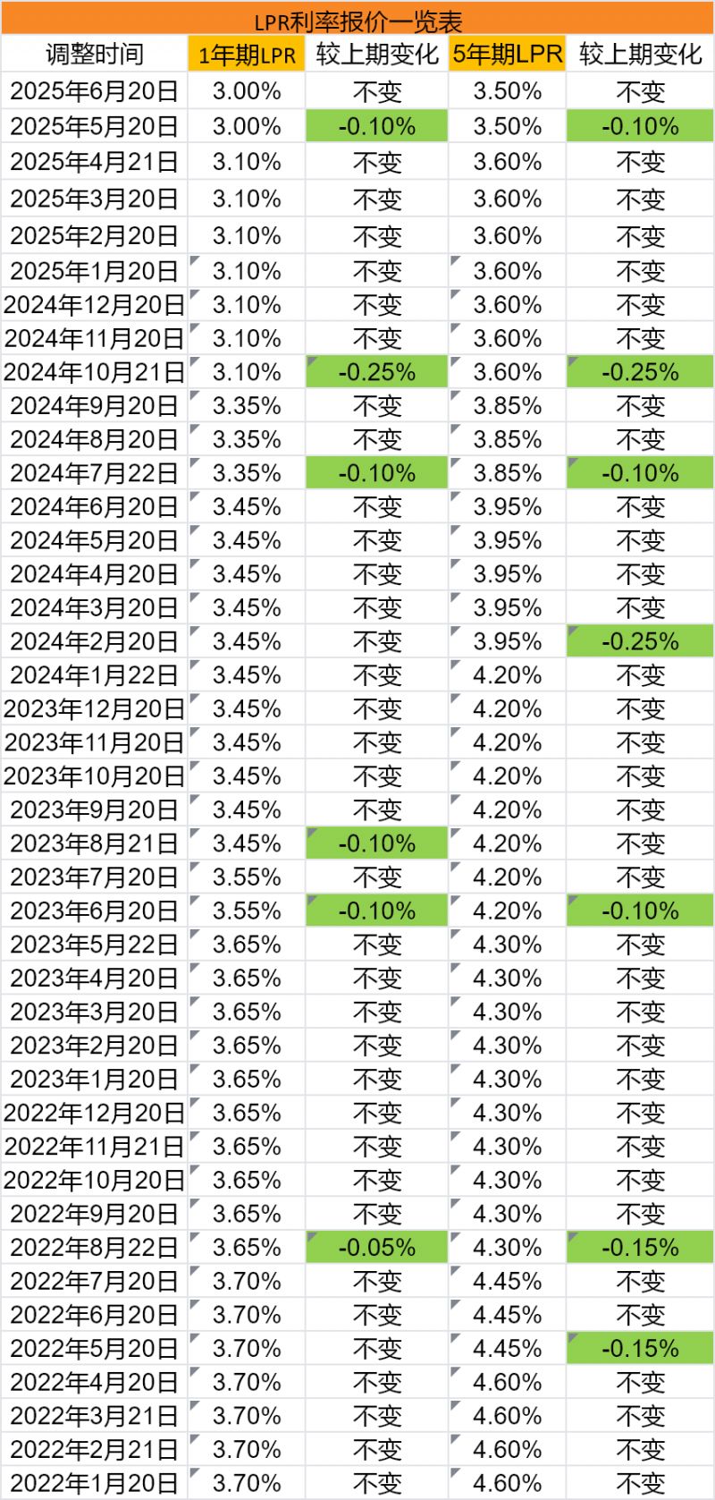 今年(nián)6月(yuè),中國(guó)央行(xíng)公布,1年(nián)> 期LPR為(wèi)3.0%,5年(nián)期以上(shàng)LPR為(wèi)3.5%, ≤≤均持平前值,下(xià)圖為(wèi)LPR曆史變化(huà)一(yī)覽表。