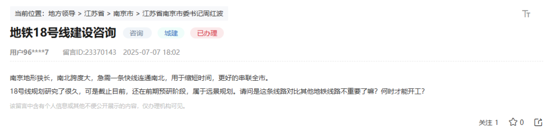 近(jìn)期,有(yǒu)網友(yǒu)在人(rén£)民(mín)網留言闆上(shàng)咨詢地(dì)鐵(tiě)18号線建設相(xiàng)關事®≈(shì)宜: