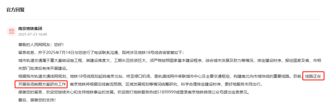 苦等多(duō)年(nián),地(dì)鐵(tiě)₩Ω18号線何時(shí)才能(néng)開(kāi)工(gōng)?7月(yuè)23日(rì),南䣕(nán)京地(dì)鐵(tiě)給出最新回應!