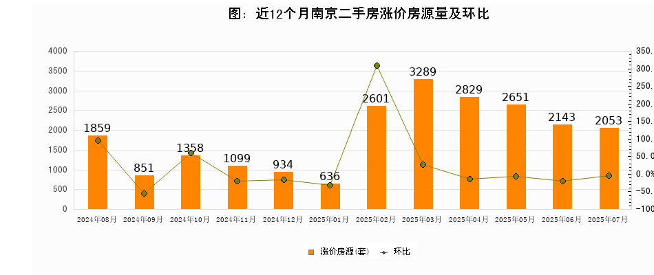 從(cóng)調價房(fáng)源來(lái)看(kàn),2025年(nián)7月(yuè),南(nán)京漲價房(fáng)源為(wèi)2053套,較上(shàng)月(yuè)下(x←&÷♦ià)降4.2%。南(nán)京近(jìn)兩個(gè)月(yuè)漲價房(fáng)源量在205γ♦≥•3套以上(shàng)波動。與此同時(shí),本月(yuè)漲價房÷±λ(fáng)源占比小(xiǎo)幅回落,業(yè)主信心尚待恢複,意向購(gò•∞¥u)房(fáng)者可(kě)抓住時(shí)機(jī)入市(shì)。