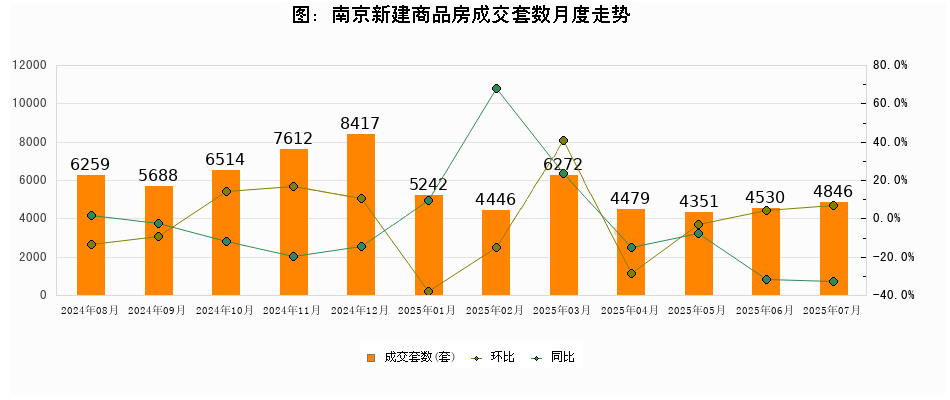 一(yī)、南(nán)京7月(yuè)新房(fáng)成交4846套,環比上(shàng≥≤<↑)漲7%,同比下(xià)降32.9%