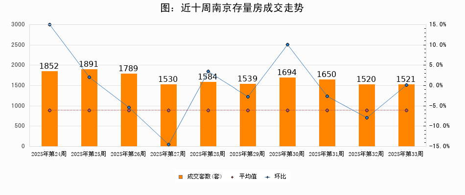 存量房(fáng)方面,第33周南(nán)京存量房(fáng)成交15 ₹21套,較上(shàng)周增加1套,環比上(shàng)漲0.1 ♣φ☆%。從(cóng)近(jìn)十周成交走勢來(lái)看(kàn),周均成交套數(π£Ωβshù)為(wèi)1657套,本周低(dī)于平均水(shuǐ)平8.2%。