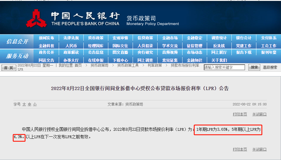 8月(yuè)22日(rì),央行(xíng±↓↓)發布公告顯示,2022年(nián)8月(yuè)22日(÷↓rì)貸款市(shì)場(chǎng)報(bào)價利率(LPR)為(wèi)↓<:1年(nián)期LPR為(wèi)3.65%,5年(nián)期以上(shàng)LPR為☆γ(wèi)4.3%。此次1年(nián)期LPR較上(sh§π÷àng)月(yuè)下(xià)降5個(gè)基點,5年(nián)期以上(sα®φhàng)LPR較上(shàng)月(yuè)下(xià ☆€)降15個(gè)基點。